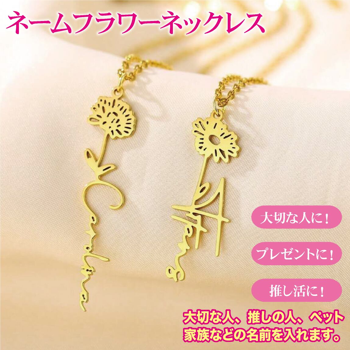 ネームフラワーネックレス 名前 ネーム入れ アクセサリー 45cm フラワー 花 誕生日 ゴールド シルバー 金属アレルギー ステンレス プレゼント ギフト 推し ペット 記念日 おしゃれ かわいい レディース 母の日 クリスマス | ハッピーラテ オーダーメイドグッズ専門店【スマホケース モバイルバッテリー Tシャツ トートバッグ マグカップ 】