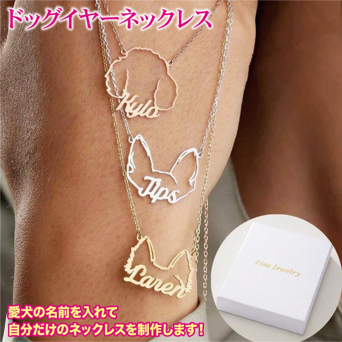 ドッグイヤーネックレス ネーム入れ 名前 うちの子 愛犬 ペット 犬 シルエット オーダーメイド オリジナル オーダー ネックレス アクセサリー ゴールド シルバー ステンレス 金属アレルギー かわいい おしゃれ プレゼント ギフト 誕生日 記念日 母の日 クリスマス | ハッピーラテ オーダーメイドグッズ専門店【スマホケース モバイルバッテリー Tシャツ トートバッグ マグカップ 】