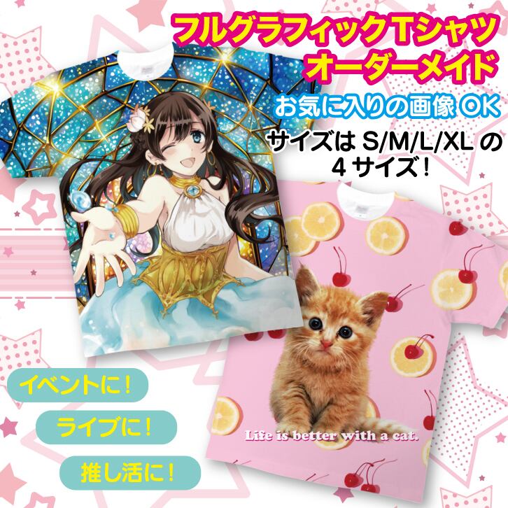 お気に入りの推しやペットなどを全面に大胆プリントできる迫力満点のフルグラフィックTシャツです!