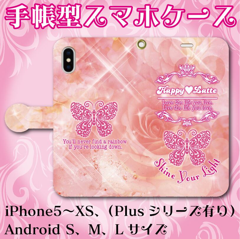 手帳型 スマホケース バタフライ バラ かわいい オシャレ ピンク