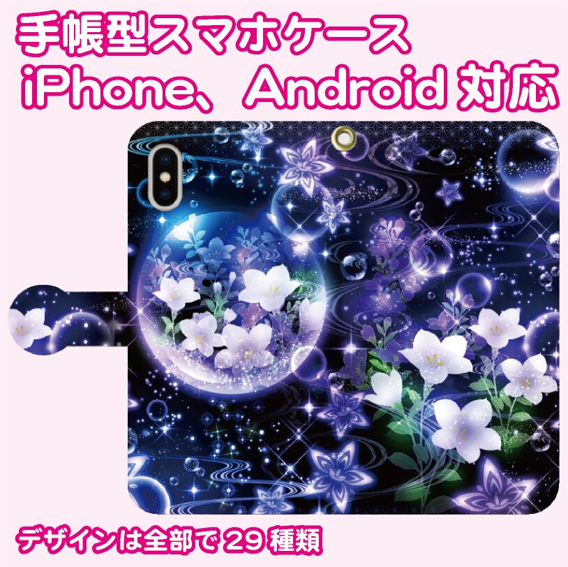 スマホ スマホケース Android アンドロイド iPhone アイフォン 手帳型 プレゼント かわいい オシャレ ピンク フラワー 花 姫系 可愛い 幻想的 和柄 和風 キラキラ キャバ 月 蝶 iPhoneX iPhoneXS iPhoneXR