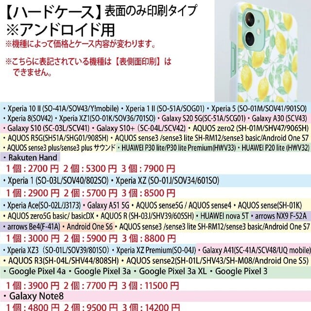 【ケースの種類と機種】
