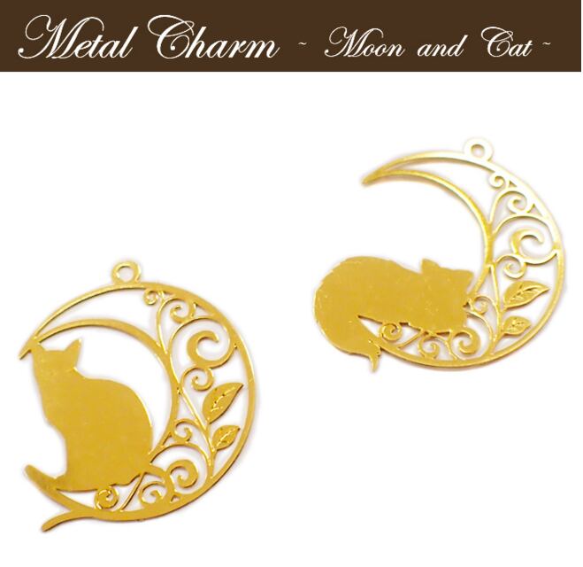 メタルチャーム 【1個入り】◆透かし 金属 三日月 猫 葉 パーツ レジン アクセサリー ゴールド メタルパーツ アニマル ハンドメイド オリジナル | ハッピーラテ オーダーメイドグッズ専門店【スマホケース モバイルバッテリー Tシャツ トートバッグ マグカップ 】