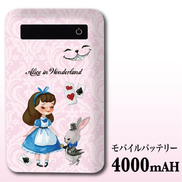 モバイルバッテリー 4000mah 充電器 スマホ iPhone Android 不思議の国のアリス アリス オシャレ かわいい プレゼント ギフト 防災 バッテリー モバイル イニシャル | ハッピーラテ オーダーメイドグッズ専門店【スマホケース モバイルバッテリー Tシャツ トートバッグ マグカップ 】